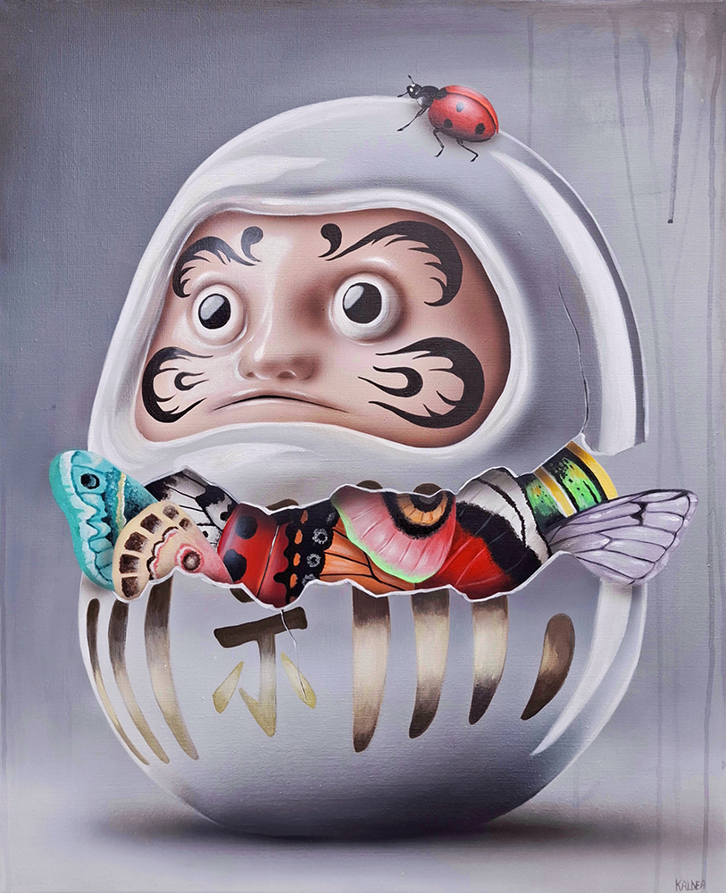 En collaboration avec la galerie Roussard, le solo show de Kaldea, intitulé « Identité », offre une expérience à traverser. Chaque espace, chaque série, participe d’un récit sensible où les thèmes se répondent et s’enchaînent. L’imaginaire japonais – mythologique comme populaire – que l’artiste réinterprèté fonctionne ainsi comme une matrice souple à travers un langage visuel capable d’interroger des problématiques universelles.